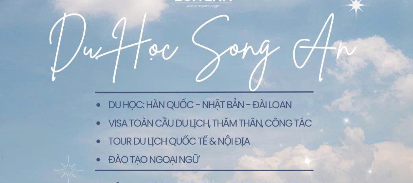 Với hơn 7 năm kinh nghiệm, Song An đã hỗ trợ thành công cho hàng ngàn du học sinh và lao động đạt được mục tiêu của họ. Bên cạnh đó có đến hơn 90% học viên quay lại giới thiệu người thân sử dụng dịch vụ của công ty chúng tôi. Chúng tôi cung cấp dịch vụ toàn diện, từ đào tạo ngoại ngữ, tư vấn chọn ngành học, trường học phù hợp, đến hỗ trợ xin học bổng, visa, tìm kiếm chỗ ở, việc làm, kết hôn, thăm thân và định cư tại các thị trường Nhật Bản, Hàn Quốc, Úc, Đức, Canada...